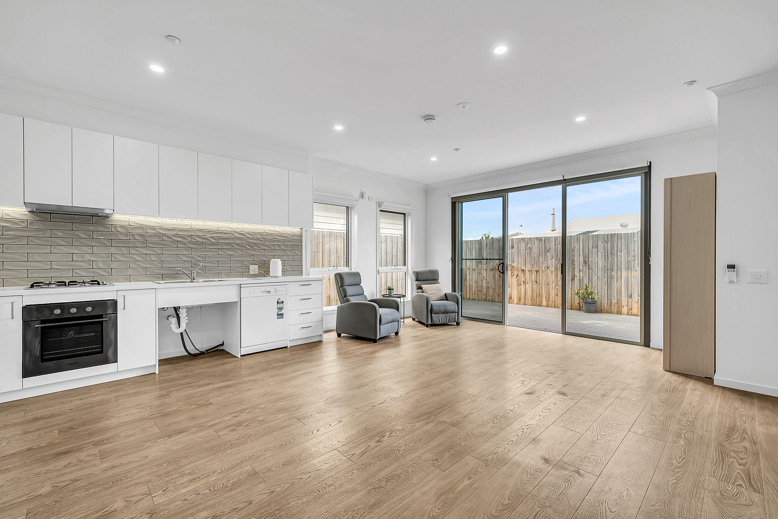 Each villa features two bedrooms with built-in robes and a shared accessible bathroom, creating a supportive environment where residents can enjoy privacy while sharing common spaces. Open-plan kitchen, dining and living areas provide a relaxed central hub for cooking, unwinding or spending time together.